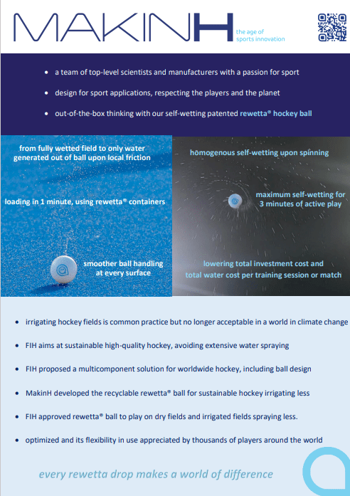 Our rewetta® hockey ball is the essential component in the urgent quest for sustainable hockey and your hands-on solution to keep playing hockey at the level you are used to. Instead of extensively irrigating the complete hockey field, we have brought the minimal amount of water to the ball itself.